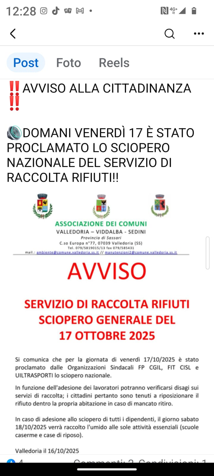 Sciopero Nazionale del Servizio di Raccolta Rifiuti - Comunicazione.